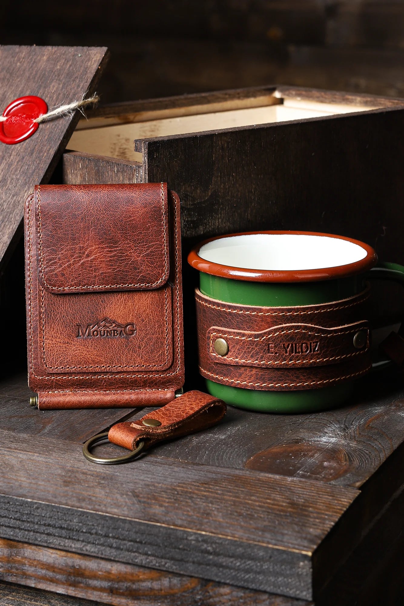 Mounbag hediye setleri; hakiki deri ürünler, emaye detaylar ve mühürlü ahşap kutusuyla “aldım” demek için değil, gerçekten hediye etmek için hazırlandı.