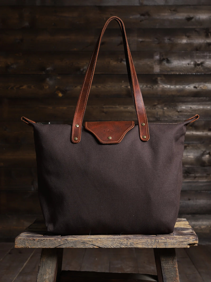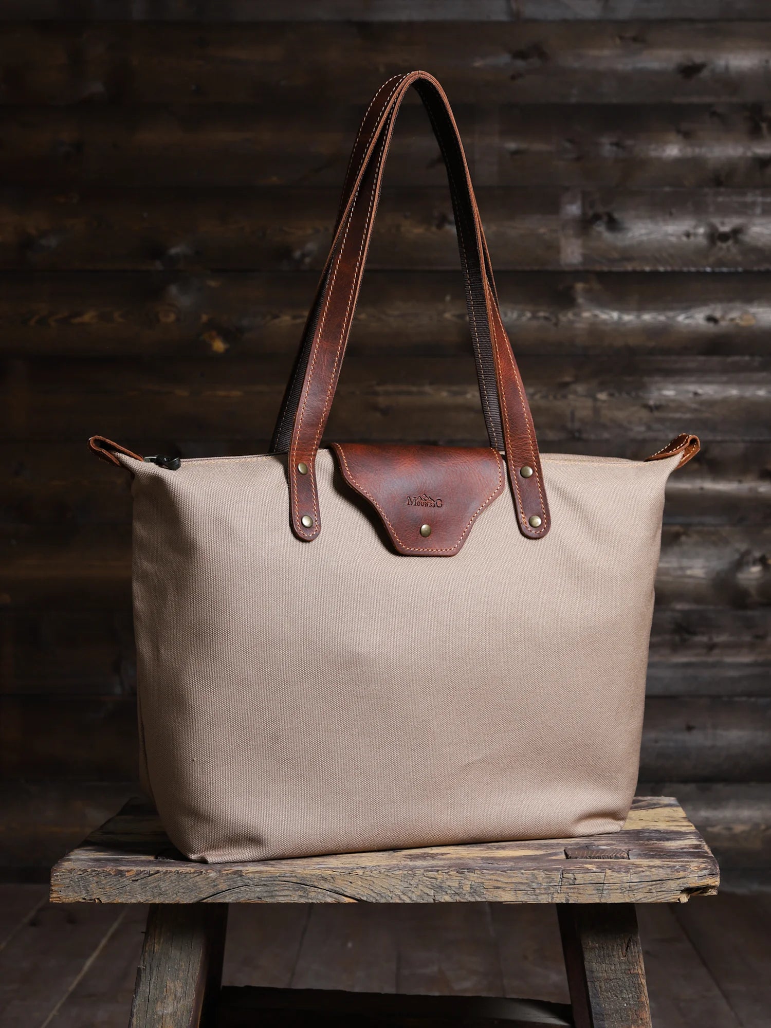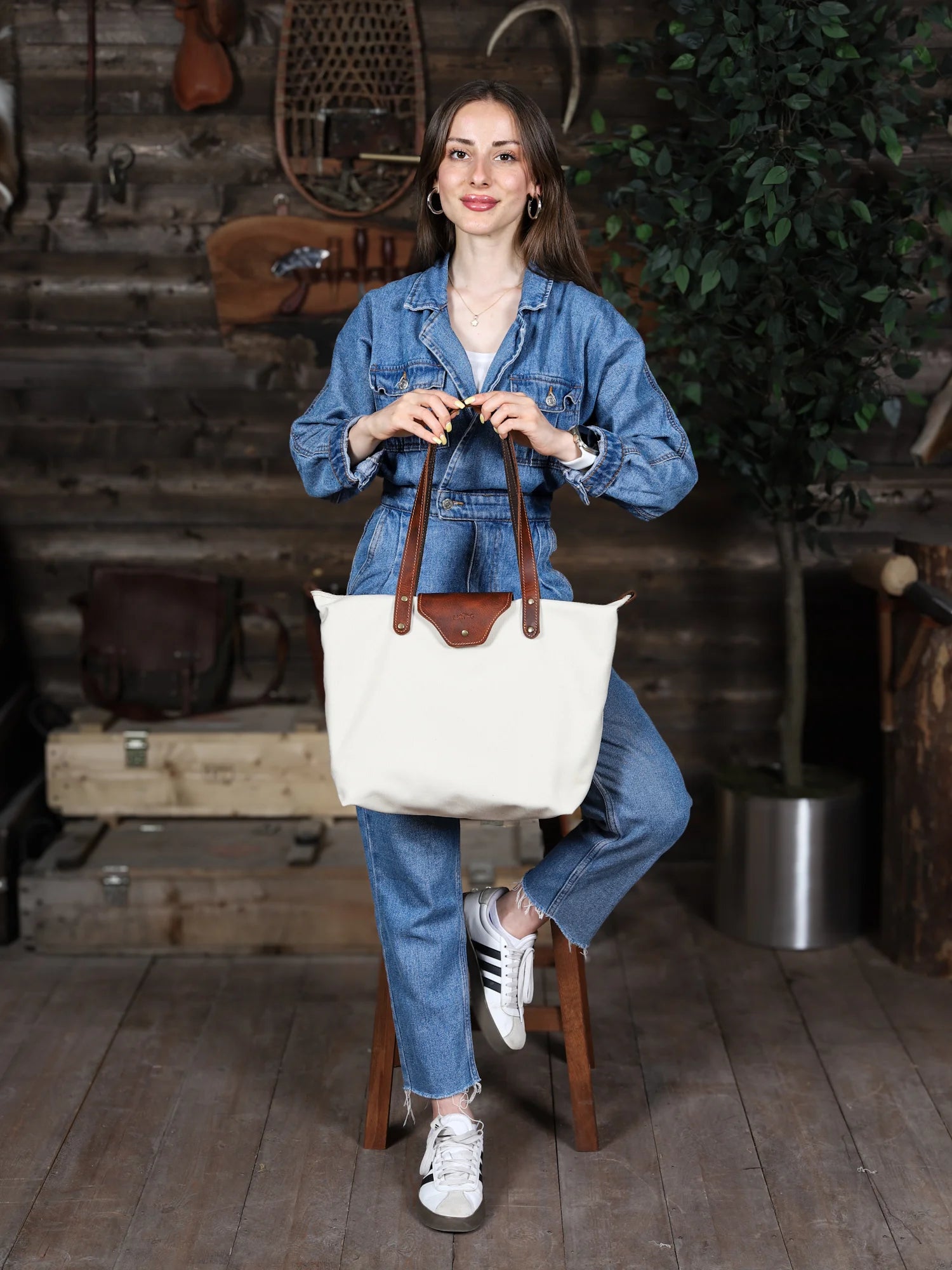 Dış yüzeyinde kullanılan suya dayanıklı kanvas kumaş, doğal dokusuyla uzun ömürlü bir kullanım sağlar. Detaylardaki hakiki deri parçalar ise çantaya sofistike bir hava katar.
