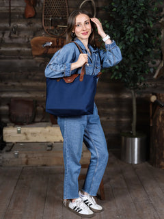 Dış yüzeyinde kullanılan suya dayanıklı kanvas kumaş, doğal dokusuyla uzun ömürlü bir kullanım sağlar. Detaylardaki hakiki deri parçalar ise çantaya sofistike bir hava katar.