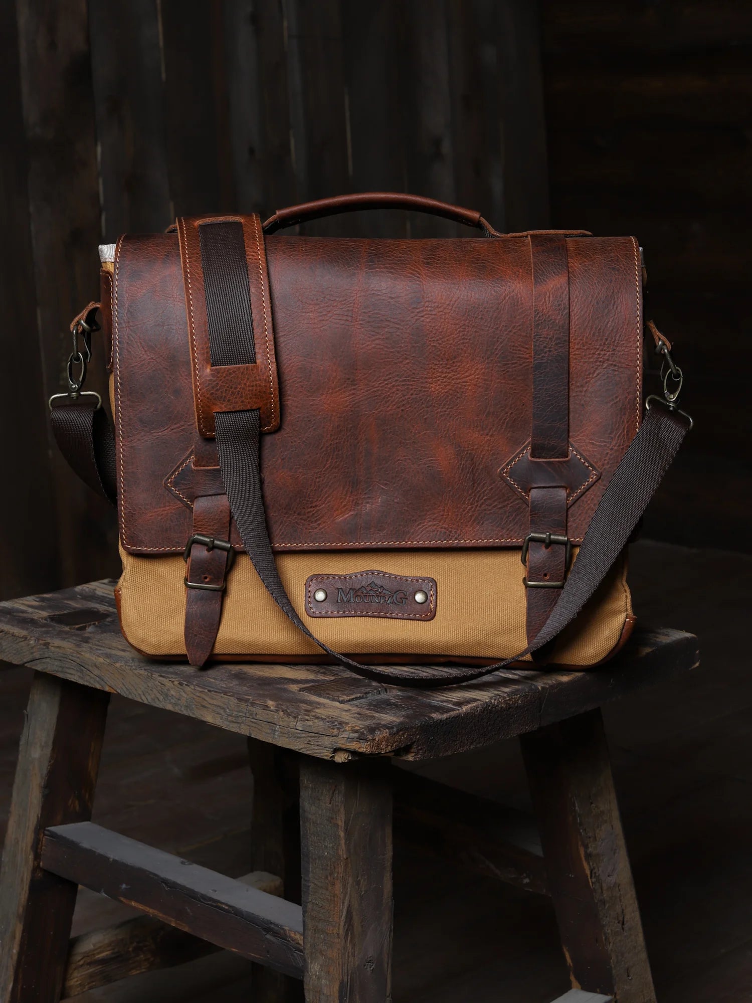 Hakiki deri ve mumlu kumaş kullanarak özenle tasarladığımız Aspendos postacı çanta, şıklığı ve kullanışlılığı bir araya getiriyor.