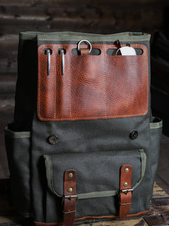 Tamamen su geçirmez mumlu kanvas gövdesi ve zarif deri detaylarıyla hem dayanıklılığı hem de modern sadeliği bir araya getiriyor. Üniversiteye giderken, işe koştururken ya da şehirde vakit geçirirken her an yanında.