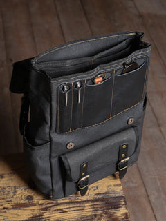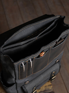 Tamamen su geçirmez mumlu kanvas gövdesi ve zarif deri detaylarıyla hem dayanıklılığı hem de modern sadeliği bir araya getiriyor. Üniversiteye giderken, işe koştururken ya da şehirde vakit geçirirken her an yanında.