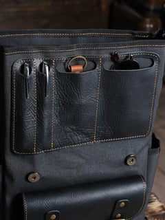 💦 Su geçirmez mumlu kanvas kumaş & hakiki deri detaylar