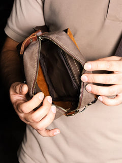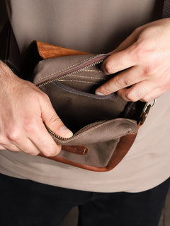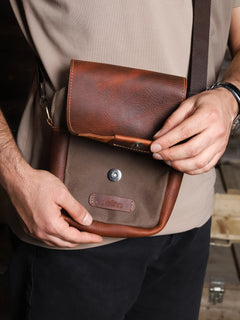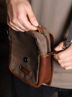 Hakiki deri detaylar ve yağmura dayanıklı mumlu kanvasla tasarladığımız PETRA freebag, kompakt boyutuyla retro şıklığı ve işlevselliği bir araya getiriyor.