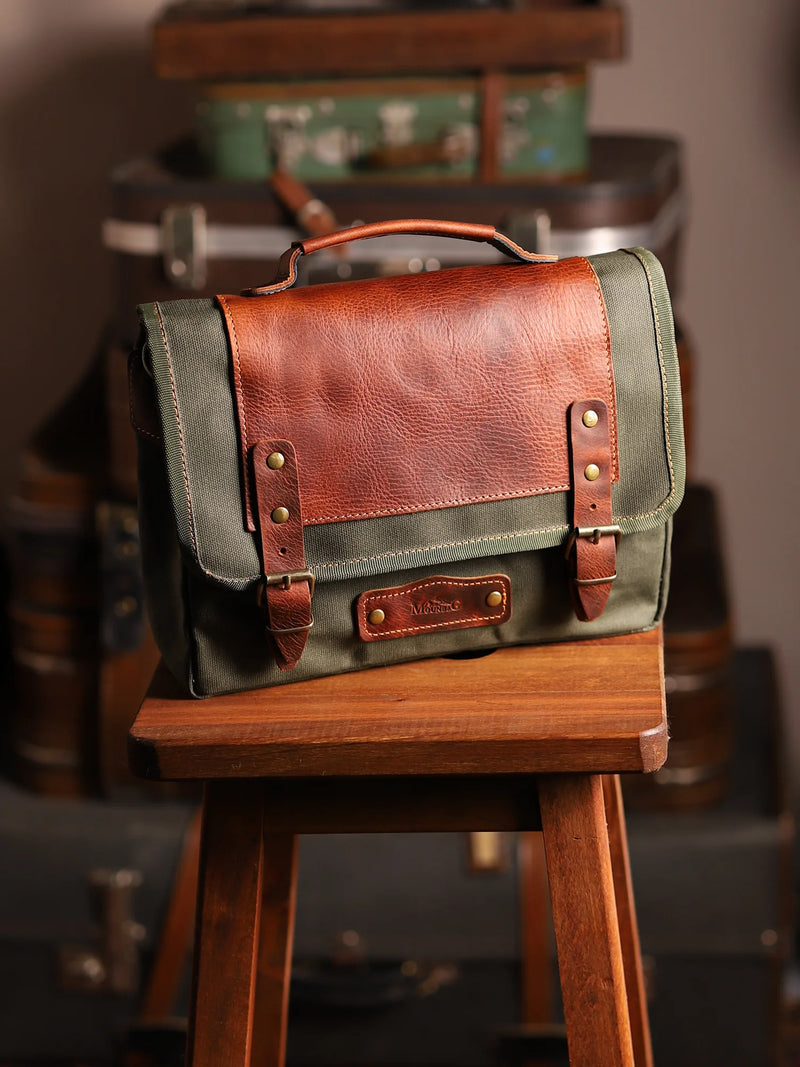 Kapak ve taşıyıcı detaylarda hakiki deri kullanılırken; ana gövde mumlu kanvas kumaştan üretilir. Bu yapı sayesinde:
