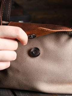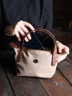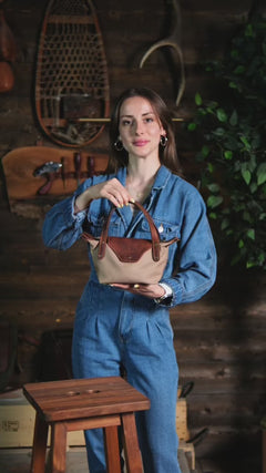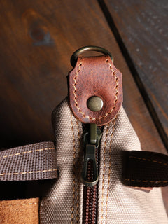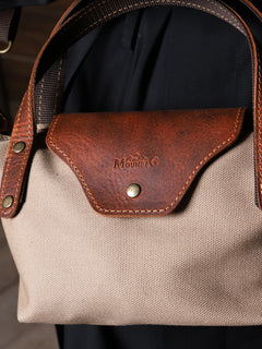 Dış yüzeyinde kullanılan kanvas, doğadan gelen dokusuyla hem suya dayanıklı hem de uzun ömürlü bir yapı sunar. Detaylarında yer alan hakiki deri parçalar, çantaya zarif bir karakter kazandırır.