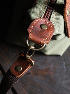 Dış yüzeyinde kullanılan kanvas, doğadan gelen dokusuyla hem suya dayanıklı hem de uzun ömürlü bir yapı sunar. Detaylarında yer alan hakiki deri parçalar, çantaya zarif bir karakter kazandırır.