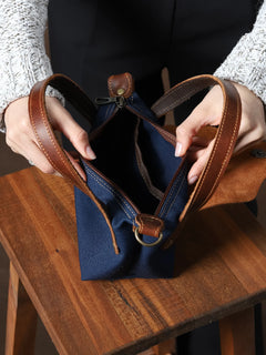 Dış yüzeyinde kullanılan kanvas, doğadan gelen dokusuyla hem suya dayanıklı hem de uzun ömürlü bir yapı sunar. Detaylarında yer alan hakiki deri parçalar, çantaya zarif bir karakter kazandırır.