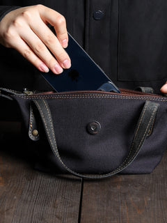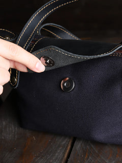 Dış yüzeyinde kullanılan kanvas, doğadan gelen dokusuyla hem suya dayanıklı hem de uzun ömürlü bir yapı sunar. Detaylarında yer alan hakiki deri parçalar, çantaya zarif bir karakter kazandırır.